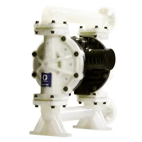 Bomba neumática Husky 1050 GRACO 649038 con válvula de aire estándar y material de sección de fluido en polipropileno. Asientos en acero inoxidable, bolas en acero inoxidable 316 y diafragmas en PTFE/EPDM de 2 piezas. La bomba de diafragma cuenta con una válvula de aire de baja pulsación que no se atasca y proporciona un cambio suave y rápido.