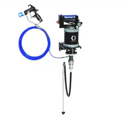 Bomba Mini Merkur GRACO Airless 30:1. Merkur ES + pistola PerformAA 50. Es uno de los paquetes de pulverización airless más eficientes, diseñado para utilizar mínimo de material y reducción del uso de aire y pulsaciones.