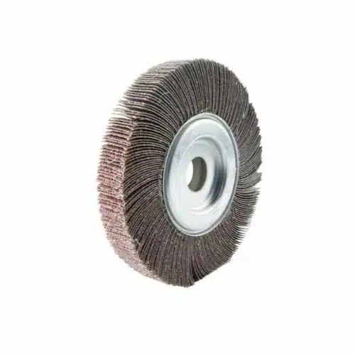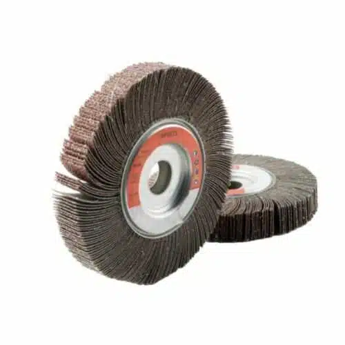 Cepillos abrasivos de láminas con núcleo ABRASTAR. Ruedas abrasivas para trabajos de desbarbado, esmerilado y acabado en máquinas fijas y portátiles. Fabricadas en tela de corindón con soporte algodón, especialmente indicadas para aplicaciones en superficies metálicas.