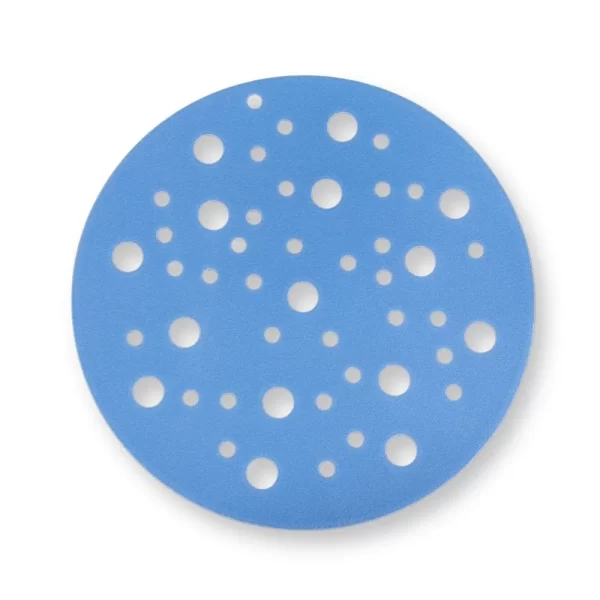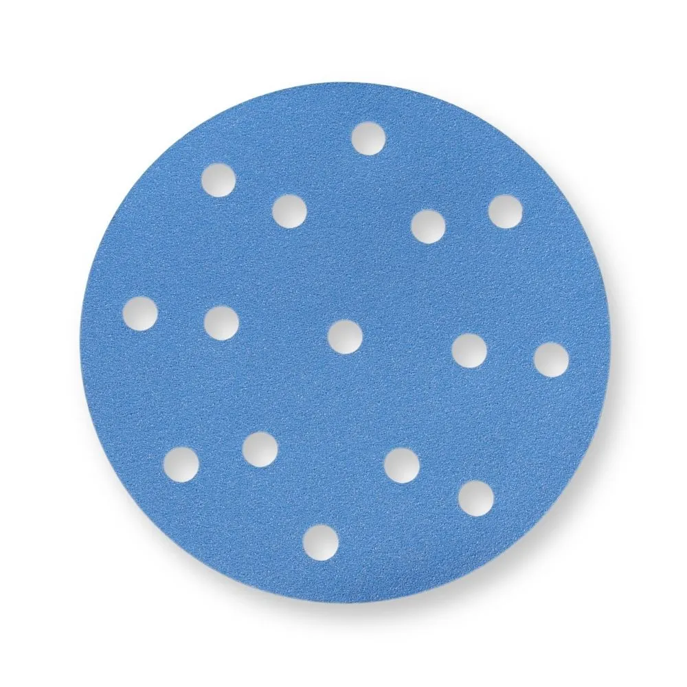Disco abrasibo film ABRASTAR KS-BLUE. Disco abrasivo fabricado sobre soporte film con sistema de fijación por velcro, incorporando una mezcla de óxido de aluminio premium y grano cerámico al 50%. Esta combinación proporciona un alto rendimiento, excelente durabilidad y un comportamiento constante en procesos de lijado exigentes.