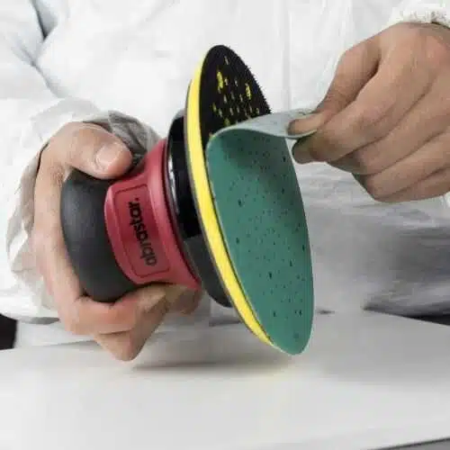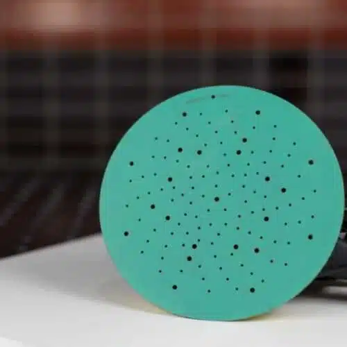 Disco abrasivo film de poliéster con velcro ABRASTAR HELIX-GREEN. Disco para lijado versátil y polivalente de alto rendimiento, con sistema multi-aspiración de última generación para espacios libres de partículas y polvo.