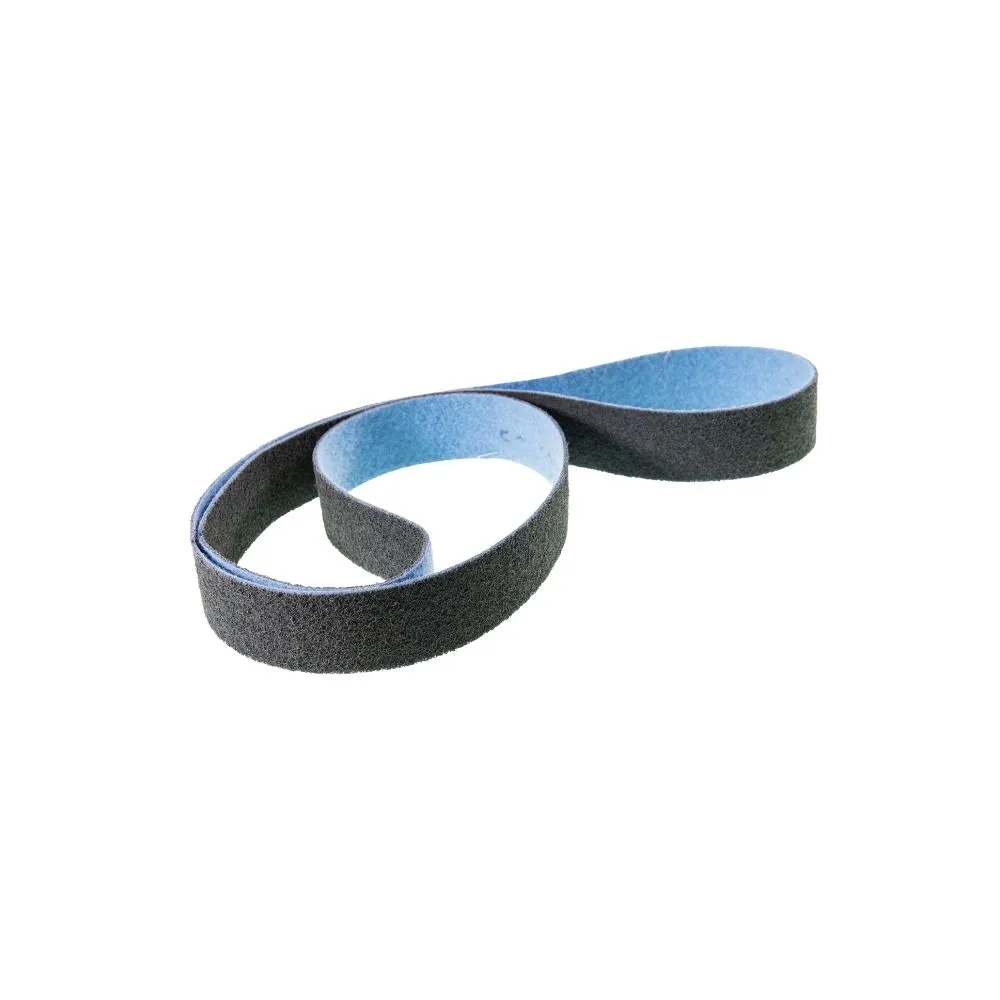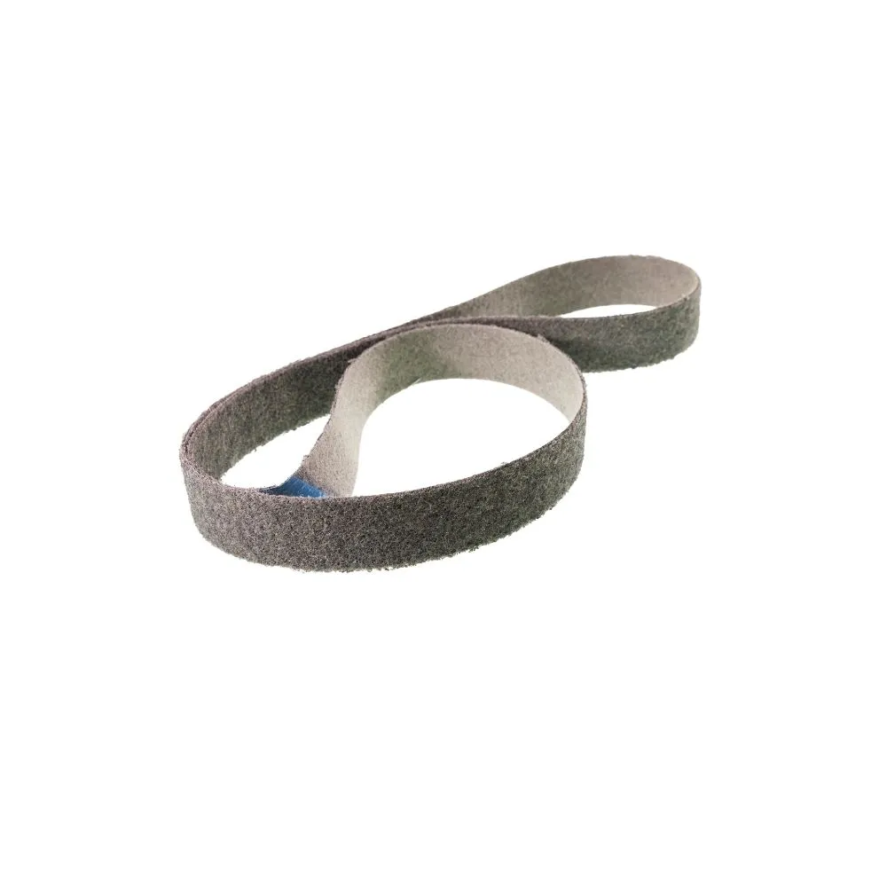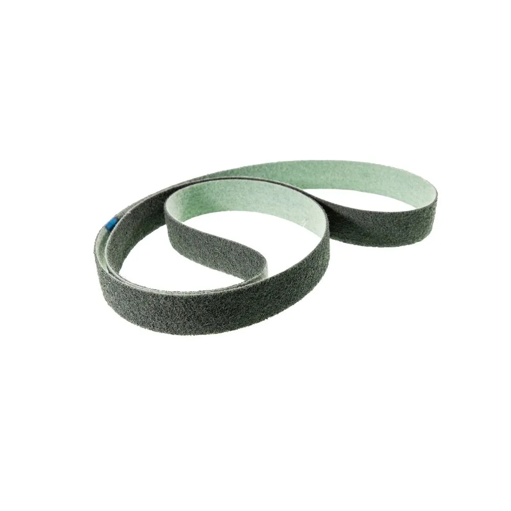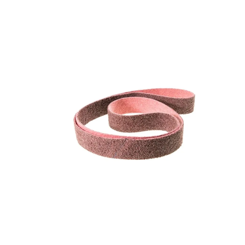 Lija de banda estrecha A MEDIDA con soporte y material de fibra no tejida ABRASTAR SCM. Abrasivo fabricado con tipo de junta tope y especialmente indicado para procesos y tratamientos de superficies en metal. Producto industrial para procesos de desbarbado ligero, limpieza, acabado y matizado.