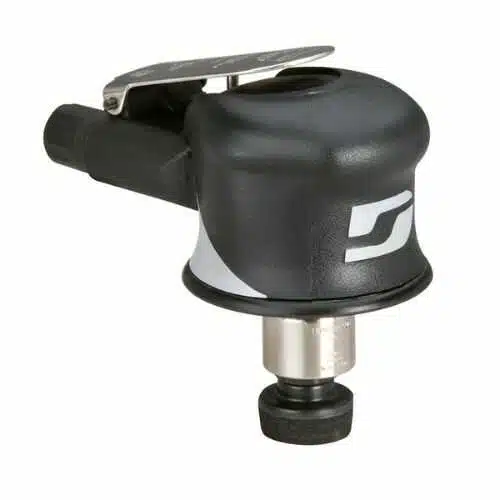 La Mini-Dynorbital 57500 de Dynabrade incluye un cabezal de lijado que acepta almohadillas con roscas macho de tipo traba. Esta lijadora orbital aleatoria accionada por aire tiene una órbita de 5 mm. de diámetro.