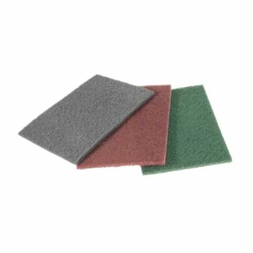 Pliego abrasivo de fibra no tejida en corindón / óxido de aluminio (color verde y rojo) o carburo de silicio (color gris, gris oscuro) ABRASTAR. Con soporte de fibra de nylon y adhesivo resina con recubrimiento tridimensional, es un producto ideal para aplicaciones en procesos de satinados y acabados después del lijado.