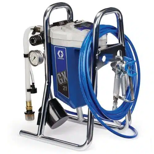 Bomba eléctrica GRACO GX 21, con diseño optimizado es la solución rápida, portátil y asequible para pequeños trabajos de pintura en interiores. La probada bomba de pistón y la boquilla SwitchTip RAC X proporcionan rápidamente un acabado suave. Reemplazo rápido de la bomba en el trabajo, sin necesidad de herramientas.
